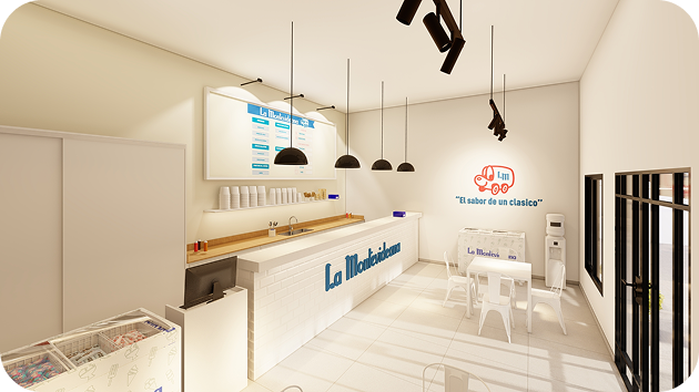Helado de crema americana con trozos de duraznos, dulce de leche y mini merengues.