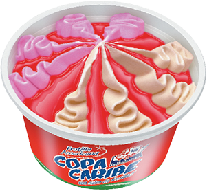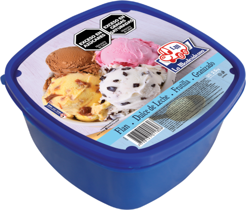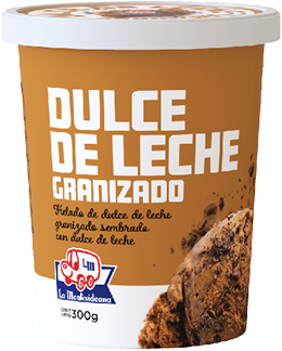 Helado de dulce de leche granizado, chocolate, americana y frutilla.