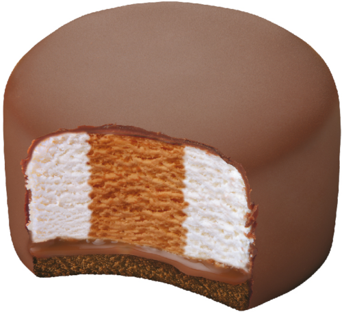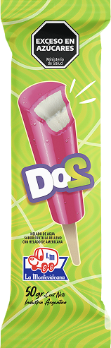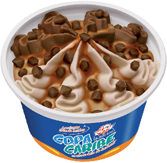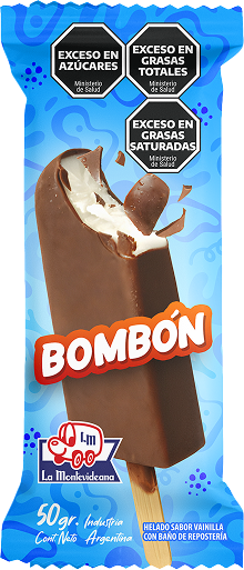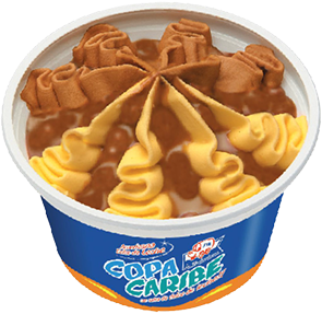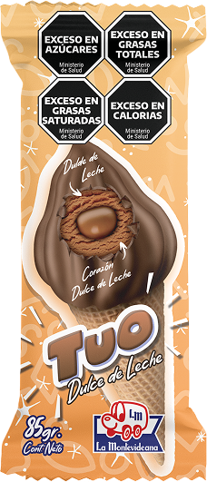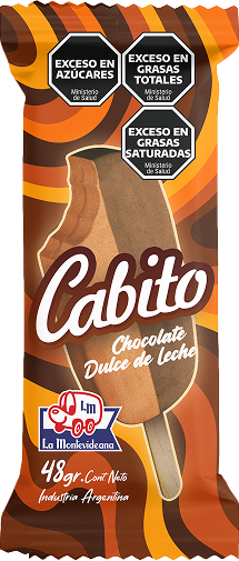 Helado de dulce de leche relleno con dulce de leche, con baño de chocolate.