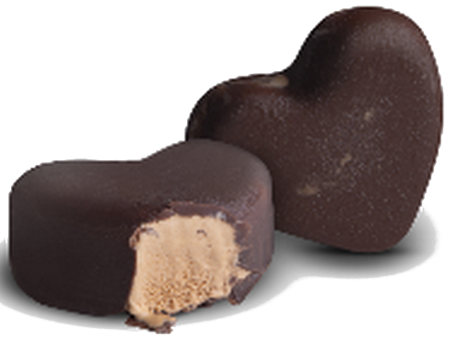Helado de dulce de leche con baño de chocolate, con forma de corazón.