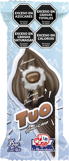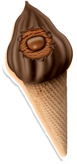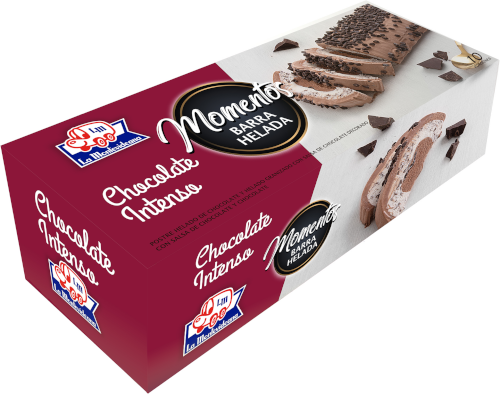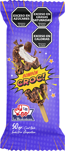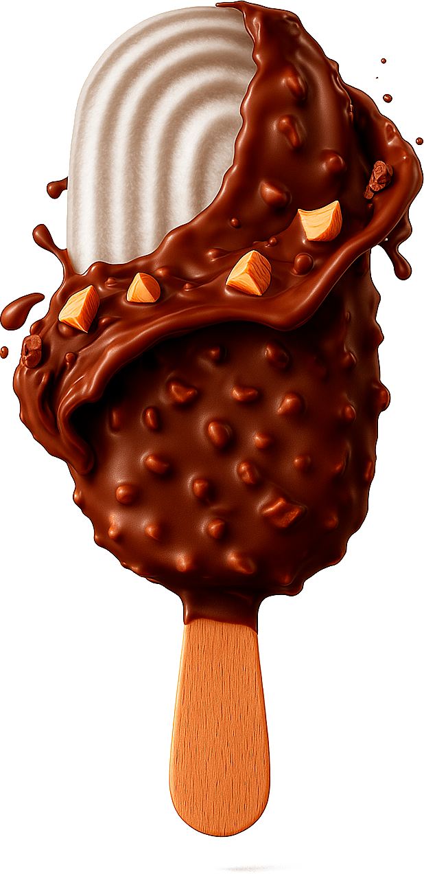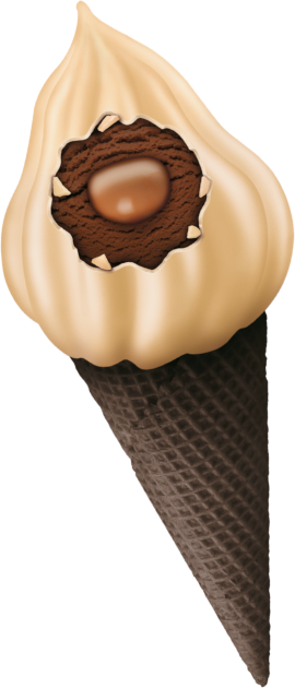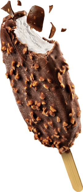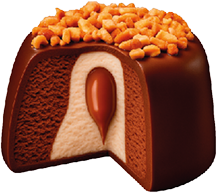 Helado de chocolate y americana relleno de dulce de leche, con baño de chocolate y crocante de maní.