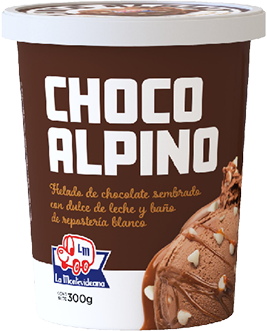 Helado de chocolate con dulce de leche y chips de chocolate blanco.