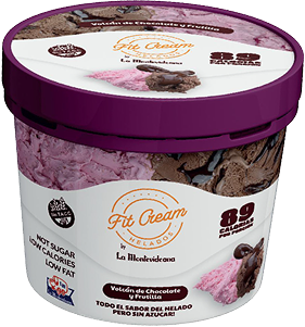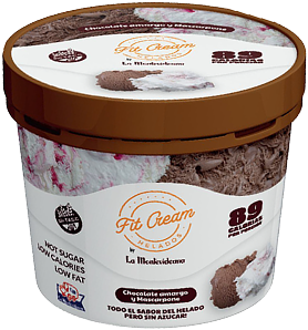 Helado sin azúcar de chocolate y mascarpone con salsa de frutilla. Libre de Gluten.