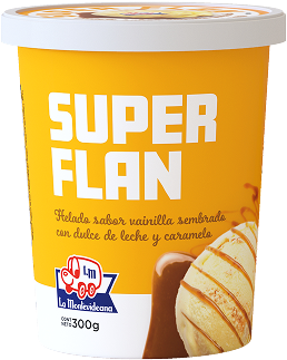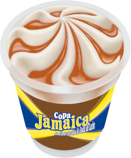 Helado de vainilla con dulce de leche y salsa de caramelo.